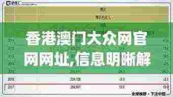 在当今信息爆炸的时代,信息的快速传播和获取是每个人都不可避免的。但如何在海量信息中筛选出有用且明晰的信息,是大家常常面临的挑战。香港澳门大众网以其信息明晰解析的特点,帮助用户迅速抓住核心信息,避免了不必要的时间浪费。