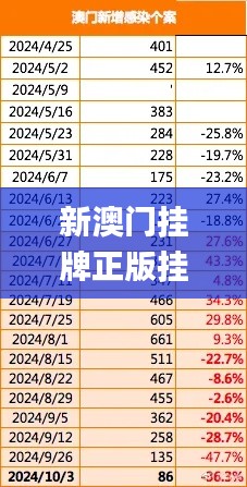新澳门挂牌是指在澳门地区的一种新型挂牌制度,随着澳门经济多元化进程的加快,对于企业融资和发展形成了新的助力。该制度的设计旨在提升市场透明度,规范经营行为,为企业提供更广阔的融资渠道。新澳门挂牌的实施不仅为本地企业创造了更大的发展机遇,也吸引了海内外投资者的关注,成为了推动澳门经济发展的重要力量。