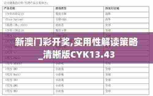新澳门彩开奖,实用性解读策略_清晰版CYK13.43