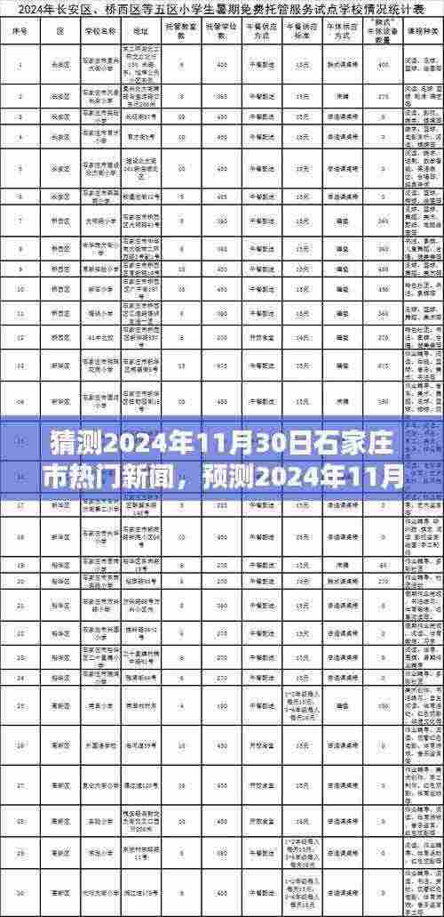 随着时代的变迁,城市发展日新月异,作为河北省的重要城市,石家庄市的发展备受关注,本文将围绕“猜测2024年11月30日石家庄市热门新闻”这一主题,对可能的新闻热点进行预测和分析。