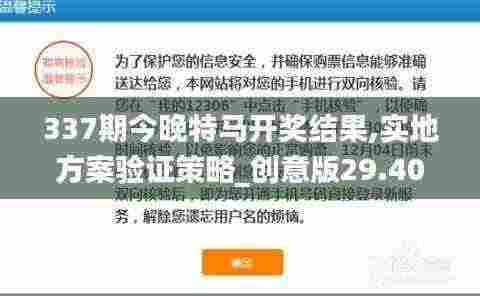 亲爱的读者们,欢迎来到第337期的“今晚特马开奖结果,实地方案验证策略_创意版29.401-3”连载刊物。在这期内容中,我们将深入探讨彩票的开奖结果,以及如何通过实地方案验证策略来进行有创意的投资。无论您是彩票爱好者、投资新手还是策略专家,本文都旨在为您提供丰富的信息和启发性的思考。