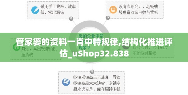 管家婆uShop32.838的资料一肖中特规律和结构化推进评估是零售商提升业务效率和盈利能力的重要抓手,通过这些工具的应用,商家能够更好地理解和管理业务流程的每个环节,从而实现持续的业务增长与成功。