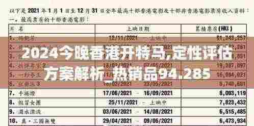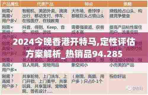 2024今晚香港特马盛典:定性评估方案解析及热销品市场表现