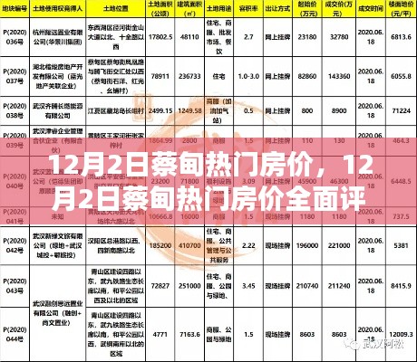摘要:,,本文是关于12月2日蔡甸热门房价的全面评测。文章介绍了蔡甸地区的热门房价情况,对该地区的房产特性进行了详细分析,并对比了竞品。文章还通过用户分析,探讨了购房者的需求和偏好。本文旨在为购房者提供全面的蔡甸地区房产信息,帮助他们做出明智的购房决策。