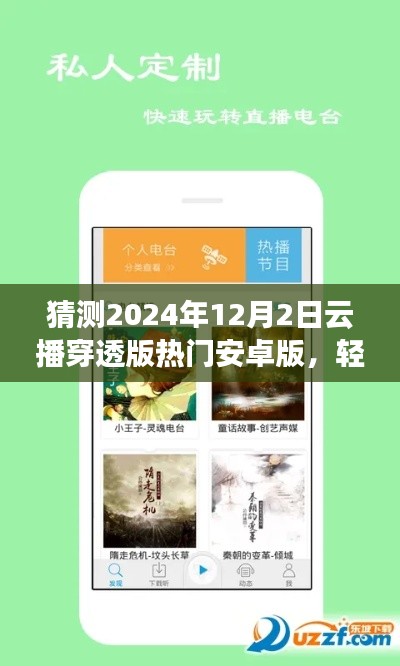 摘要:本文将介绍关于云播穿透版热门安卓版的猜测内容,该版本预计于2024年12月2日发布。该版本将提供轻松上手的使用体验,包括详细的安装使用全程指南。用户将能够方便地安装和使用该应用,享受云播服务带来的便利。