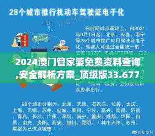 在全球化的信息时代背景下,数据管理和查询成为我们日常生活和工作中不可或缺的一部分,澳门作为一个国际都市,对于高效、便捷的数据管理和查询工具的需求日益增长。“澳门管家婆”这一概念的应运而生,代表了一系列高效、实用的数据管理和查询工具,旨在帮助用户快速获取所需资料,随着2024年的来临,以“2024澳门管家婆免费资料查询,安全解析方案_顶级版33.677-9”为代表的工具,展现了最新的技术和服务水平,成为澳门地区企业及个人用户的首选资源查询平台。