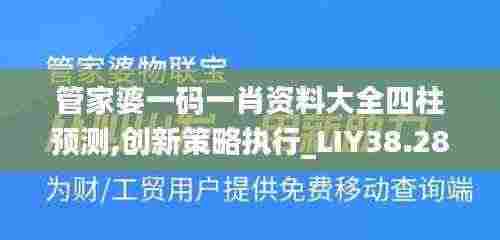 管家婆一码一肖资料大全四柱预测,创新策略执行_LIY38.284设计师版