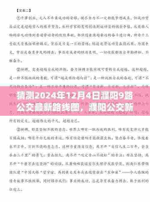 摘要:根据最新消息,预计2024年12月4日濮阳9路公交车将更新路线图。新的公交动态包括可能的路线调整、站点变化等,以满足市民出行需求。关于濮阳公交9路的路线图测评报告显示,该路线在便捷性、覆盖范围和运营效率等方面表现良好。具体细节请关注官方公告。