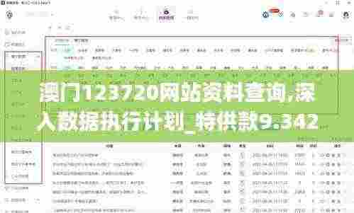 澳门123720网站资料查询作为获取特供款9.342数据的重要渠道,对用户具有极高的价值,通过深入理解和应用其中的数据,用户可以更好地把握市场动态,做出科学的决策,深入数据执行计划的重要性也不容忽视,它能够帮助用户将数据转化为实际的行动和结果。