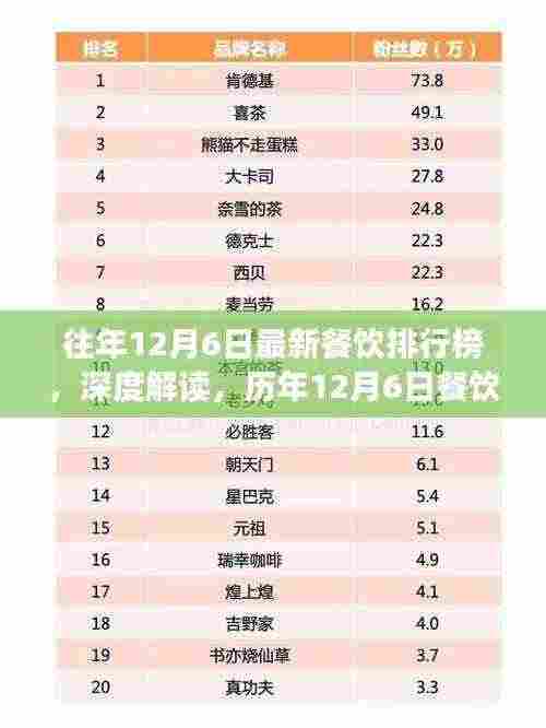 摘要:最新餐饮排行榜深度解读,聚焦于历年12月6日的变迁与反思。文章以某某观点为中心,探讨餐饮行业的演变趋势,包括消费者口味变化、新兴餐饮业态的崛起以及行业面临的挑战等。通过对比分析,揭示餐饮排行榜背后的成功因素与值得反思之处,为行业提供有价值的参考。