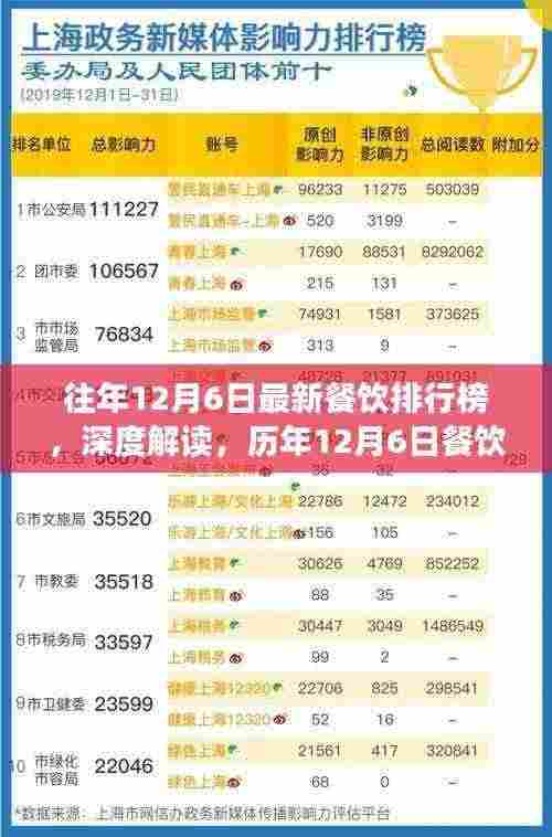 随着时代的发展,餐饮行业日新月异,每年的餐饮排行榜更是引起了广泛关注,特别是在每年的特定日期如12月6日发布的餐饮排行榜,更是成为行业内外的焦点话题,本文旨在以某某观点出发,对历年12月6日餐饮排行榜进行深入剖析,探讨其背后的意义和影响,同时分析正反双方的观点,提出个人的立场和理由。