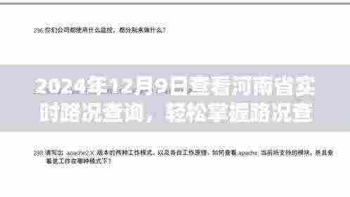 随着交通出行需求的日益增长,实时掌握路况信息对于每位驾驶者而言愈发重要,本文将指导初学者及进阶用户如何于2024年12月9日查看河南省实时路况查询,确保您的出行更加顺畅、高效。
