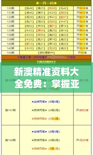 随着全球化的发展,亚洲,尤其是中国的教育市场正成为全球关注的焦点。澳门作为亚洲教育市场上的重要一环,近年来在教育领域取得了显著的发展和进步。新澳精准资料大全免费:掌握亚洲教育市场的钥匙,本篇文章将详细解读澳门教育市场的当前状态、发展趋势以及面临的机遇和挑战,为广大教育工作者和决策者提供免费的、精准的澳门教育市场资料,助力于更深入了解澳门乃至亚洲教育市场的竞争力和发展动力。