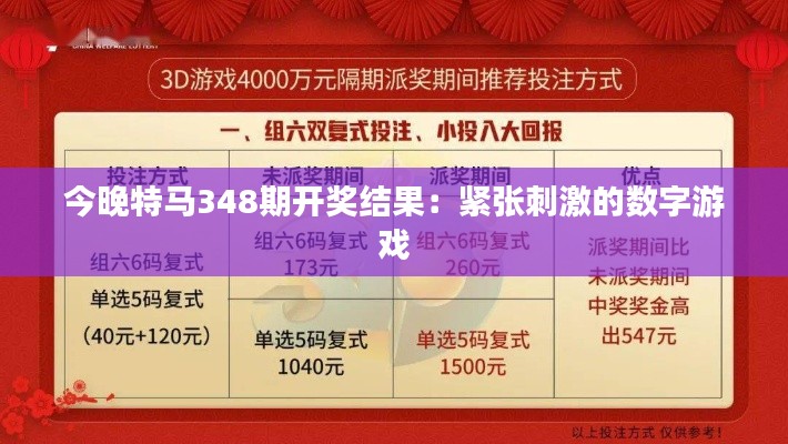 今晚特马348期开奖结果:紧张刺激的数字游戏