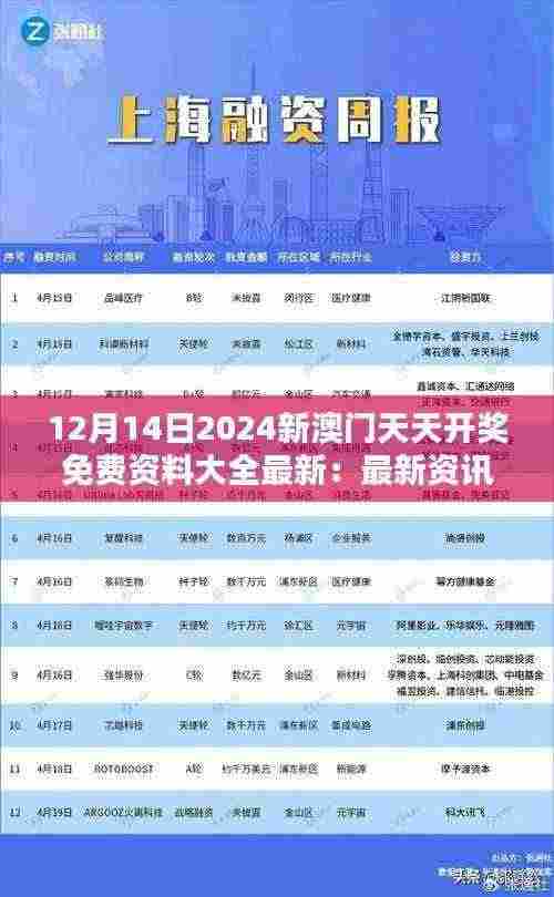 在这个五彩斑斓的世界,每个人都有一颗向往美好生活的心,而澳门,因其地域特色和历史文化的独一无二,总能为人们带来眼前一亮的新体验。2024年12月14日,澳门政策文件为您提供最新信息和免费资料,助力您深入了解“新澳门天天开奖”的趣味与奥秘。本文将针对“12月14日2024新澳门天天开奖免费资料大全最新:最新资讯,助你一臂之力”的话题进行深入解析,为关注澳门文化和彩票事业的读者们带来一场尽在指尖遨游的精彩之旅。