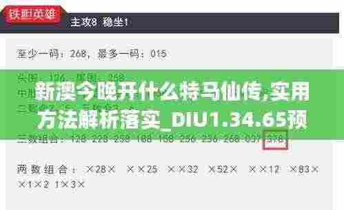 新澳今晚开什么特马仙传,实用方法解析落实_DIU1.34.65预测版