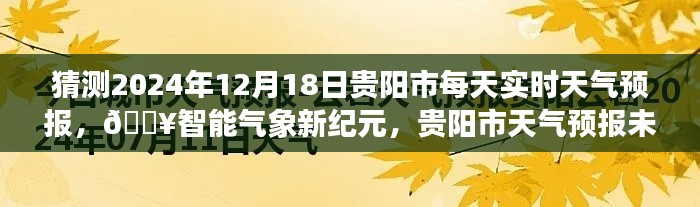 摘要:,,据智能气象预测,预计2024年12月18日贵阳市将迎来多变的天气状况。天气预报显示,当天可能会有阳光和云层交替出现,气温适中。具体天气情况还需等待当天的实时更新。智能气象新纪元为贵阳市天气预报带来了更精准的预测,助力市民更好地安排日常活动。明日气象助手的魔力将为您揭示更多关于未来天气的秘密。