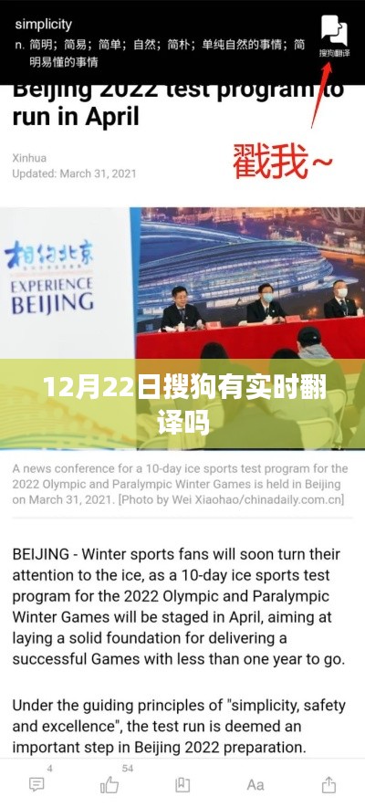 随着全球化的不断深入,语言交流的重要性愈发凸显,在互联网时代,实时翻译工具成为了沟通不同语言人群的桥梁,对于广大网友来说,选择一个准确、高效的翻译工具至关重要,特别是在特定的时间点,如12月22日,是否有实时翻译功能可能成为人们关注的焦点,本文将以搜狗翻译工具为例,探讨其在12月22日的实时翻译情况。