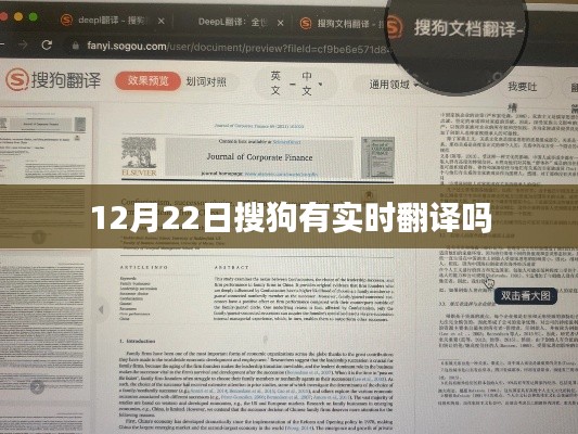 搜狗翻译在12月22日是否具备实时翻译功能,需结合当天的具体情况来判断,如果网络状况良好,且搜狗翻译工具没有进行系统更新或维护,那么其实时翻译功能应该是正常的,为了确保翻译的准确性和效率,用户还应关注搜狗翻译的更新情况,并合理利用其各项功能。