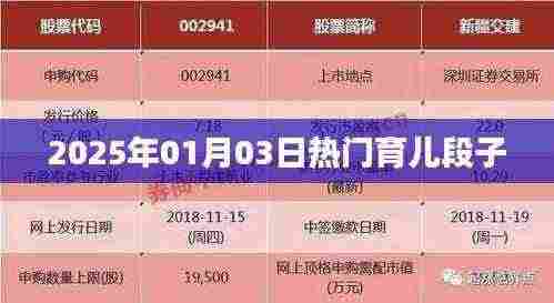 随着社会的不断发展,育儿理念也在不断更新,2025年1月3日,让我们来看看那些热门育儿段子,一起分享新时代的育儿乐趣。