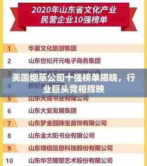 就是美国烟草公司十强排名榜的简介,这些公司在市场竞争中不断创新和进步,为全球的烟草产业做出了重要贡献,值得注意的是,吸烟对健康有害,我们应该关注健康生活方式,理性对待烟草产品。