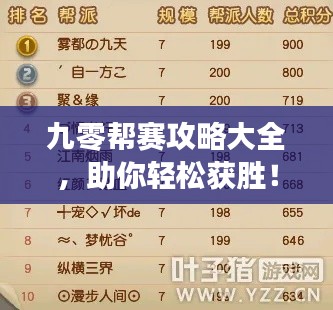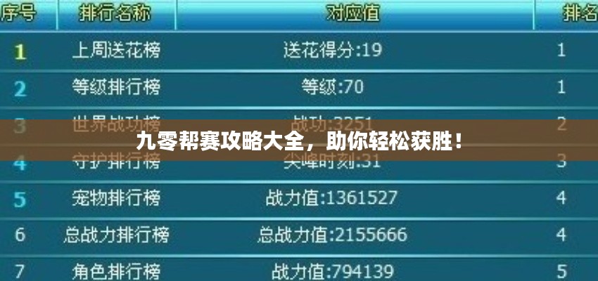 九零帮赛攻略大全,助你轻松获胜!
