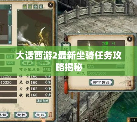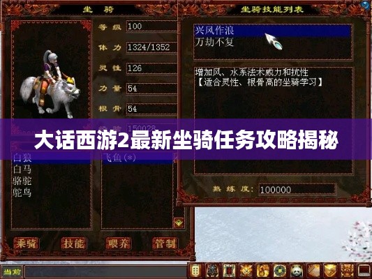在大话西游2这款经典游戏中,坐骑任务一直是玩家追求更高挑战和奖励的重要途径,随着版本的更新,大话西游2的坐骑任务也迎来了全新的挑战和惊喜,本文将为大家带来大话西游2最新坐骑任务攻略,帮助玩家顺利完成任务,获取丰厚奖励。
