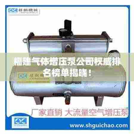 随着工业领域的快速发展,气体增压泵作为一种重要的设备,广泛应用于气体输送、压力测试等领域,在福建省,众多气体增压泵公司如雨后春笋般涌现,为各行各业提供高质量的产品与服务,本文将为您介绍福建气体增压泵公司的排名,以便您更好地了解这些企业的实力与特色。