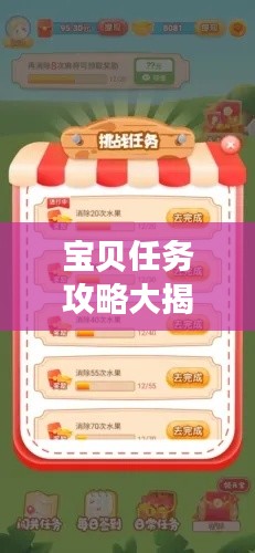 亲爱的宝贝玩家们,今天给大家带来一篇关于宝贝最新任务攻略的文章,在这个充满挑战与机遇的世界里,宝贝任务不仅能让我们的游戏生活更加丰富多彩,还能为我们带来丰厚的奖励,本文将为大家详细介绍如何玩转宝贝任务,轻松赢取奖励。