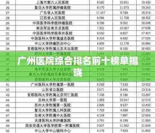 广州,作为中国南方的重要城市,医疗水平一直处于国内领先地位,本文将为您介绍广州医院综合排名前十名,这些医院在医疗技术、服务质量、科研实力等方面均表现出色。