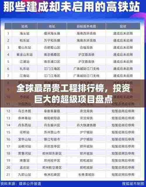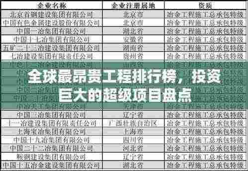 随着全球经济的发展,各国都在竞相发展大型工程项目,这些项目不仅有助于推动国家经济发展,还能提升国际影响力,本文将为您揭示全球花费最多的工程排名。