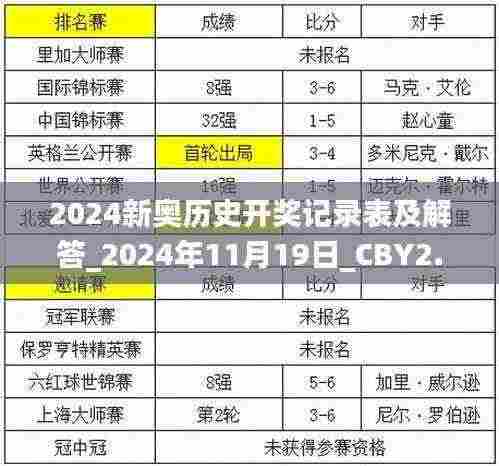 2024年即将到来,随着新一轮赛事的临近,广大运动爱好者对新奥历史开奖记录表的关注度不断攀升。特别是在2024年11月19日即将到来的关键赛事,很多球迷和投资者迫切希望了解历史开奖记录,以便进行更准确的分析和判断。本文将针对2024新奥历史开奖记录表进行深入探讨,并为大家提供相关解答。