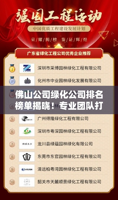 随着城市化进程的加速,绿化工作已成为城市建设中不可或缺的一部分,在佛山,许多公司投身于绿化行业,为城市的生态环境贡献力量,本文将为您介绍佛山公司绿化公司排名榜,让您了解哪些公司在绿化行业中表现突出。