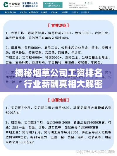 随着经济的发展和社会的进步,烟草行业作为国民经济的重要组成部分,其员工的工资待遇一直备受关注,本文将围绕“烟草公司工资排名”这一主题,探讨烟草行业的薪酬状况,揭示这个行业的工资水平及其内部差异。