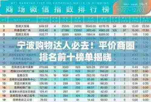 宁波,这座美丽的港口城市,不仅拥有独特的文化底蕴和繁荣的工业景象,同时也是购物爱好者的天堂,从高端奢侈品到平价实惠的商品,各类商圈应有尽有,本文将为您揭晓宁波平价商圈排名前十名,让您轻松找到购物达人的首选之地。