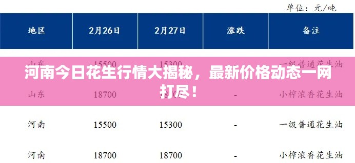 随着季节的变换和市场需求的变化,河南地区的花生价格也在不断调整,我们将重点关注河南地区花生的最新价格动态,带您了解当前市场状况。