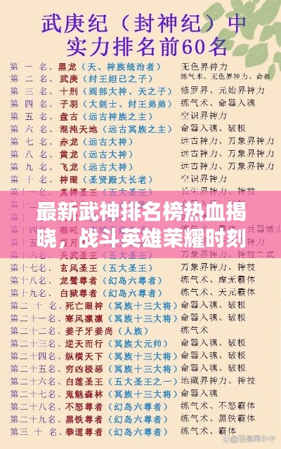 随着游戏世界的不断发展和进步,各大游戏中的武神角色也日新月异,呈现出更加丰富多彩的战斗风格,本文将根据当前版本的游戏情况,为大家带来最新的武神排名榜,让我们一起看看这些热血战斗中的英雄们的荣耀。