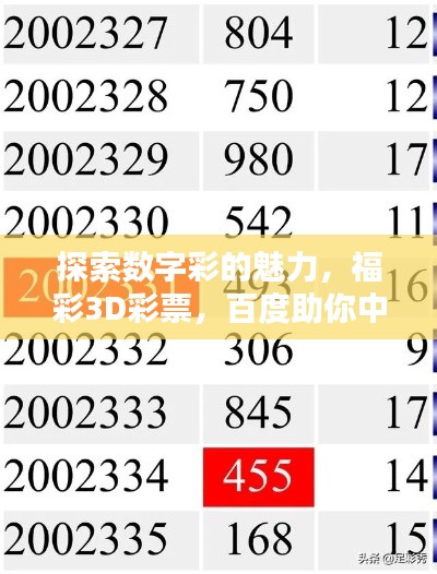随着科技的进步和社会的发展,互联网已经渗透到我们生活的方方面面,在这个数字化时代,越来越多的人选择通过互联网来参与彩票投注,享受那份期待与惊喜,我们就来一起探讨一下关于“彩票福彩3D”的相关内容,通过“百度一下”来揭开数字彩的神秘面纱。