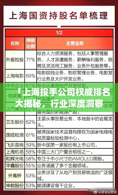 随着市场经济的发展,投手公司在金融、广告、市场营销等领域扮演着越来越重要的角色,作为中国的经济中心,上海的投手公司众多,各具特色,实力不凡,本文将探讨上海投手公司的排名及相关行业洞察。