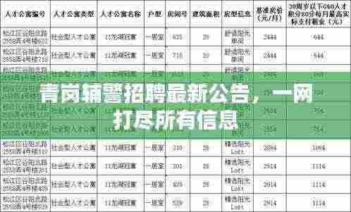 随着社会的不断发展,公安工作日益繁重,对警务人员的需求也日益增长,为了加强警务力量建设,青岗市公安局决定面向社会公开招聘辅警人员,本文旨在向广大应聘者提供关于青岗辅警招聘公告网的最新信息,以便大家及时了解和掌握相关信息。