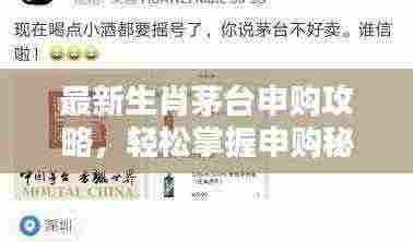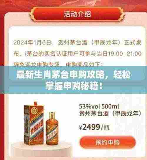 茅台酒是中国著名的白酒品牌,以其独特的口感和珍贵的收藏价值备受追捧,生肖茅台作为茅台集团推出的特殊系列,不仅继承了茅台的优质口感,还融入了生肖文化元素,具有很高的收藏价值和市场升值潜力,了解生肖茅台的申购攻略对于喜爱茅台酒的朋友来说至关重要,本文将为大家提供最新的生肖茅台申购攻略,帮助大家顺利购买到自己心仪的产品。