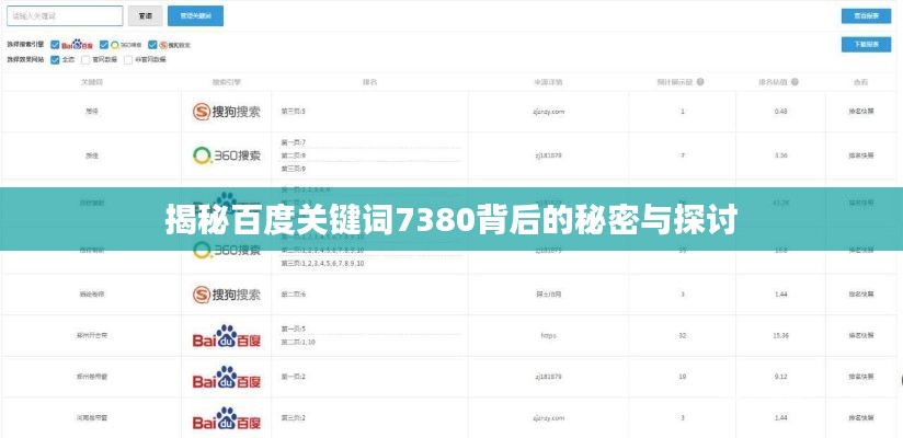 当我们提到“百度一下7380”,通常指的是在百度搜索引擎中输入这个关键词,这个关键词背后究竟隐藏着怎样的信息呢?我们将一同探寻“百度一下7380”背后的奥秘。
