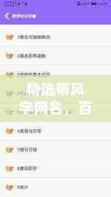 随着互联网的普及,人们在选择网名时越来越注重个性化和独特性,很多人在寻找一个合适的网名时,会根据自己的喜好、性格以及当下的心情来选择,如果你喜欢带有“风”字的网名,那么你可以在百度上搜索一下,会有很多富有创意和灵感的选项等待你去选择。