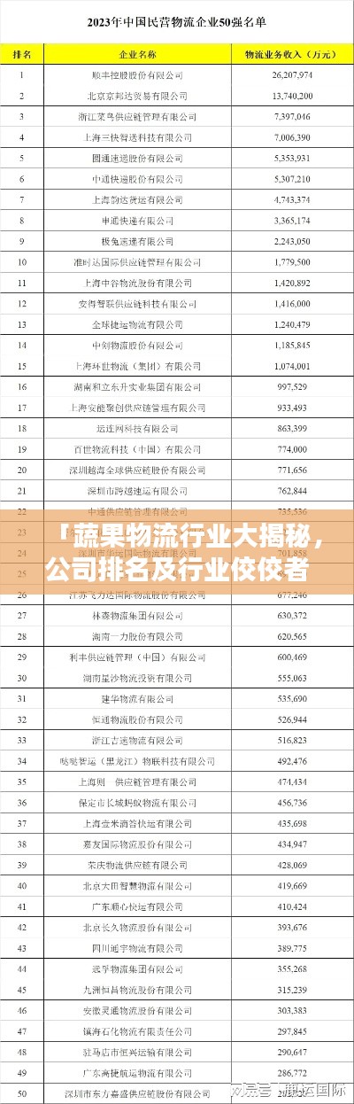 「蔬果物流行业大揭秘,公司排名及行业佼佼者一览」