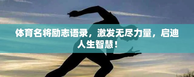 在波澜壮阔的体育世界中,无数体育名将以其卓越的表现和坚韧不拔的精神,留下了令人难以忘怀的足迹,他们的励志语录,如同明灯照亮后来者的道路,激励着无数人为梦想奋斗,本文将带你领略体育名将们的励志句子,感受他们散发出的无尽正能量。