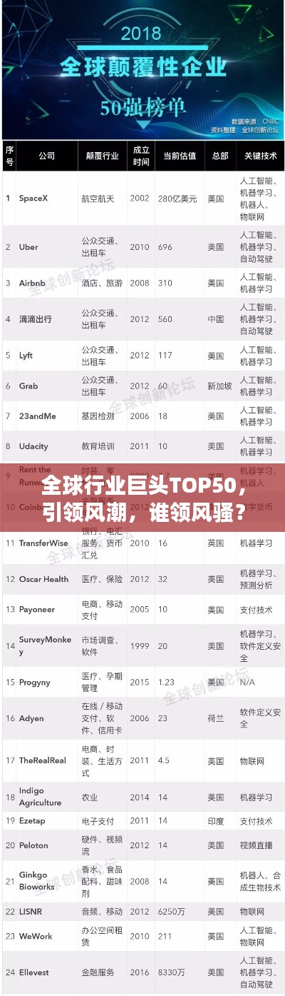 制造业的巨头如中国的汽车制造企业比亚迪、美国的通用汽车等,凭借其在汽车制造、航空航天等领域的卓越表现,成为全球排名前五十的重要成员,这些公司通过技术创新和产业升级,不断提升产业竞争力,为全球经济发展做出贡献。