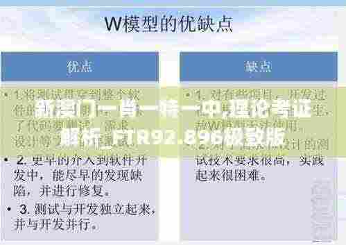近年来,澳门的经济发展迅速,博彩业、旅游业等行业的蓬勃发展吸引了大量外来投资与游客。而随着行业的扩展,相关的政策与理论研究也逐渐成为关注的焦点。本文将针对“新澳门一肖一特一中”进行深入解析,结合FTR92.896极致版的理论考证,为希望了解澳门经济及其发展思路的读者提供有价值的参考。