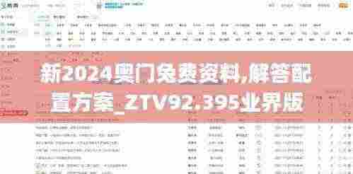 新2024奥门兔费资料,解答配置方案_ZTV92.395业界版