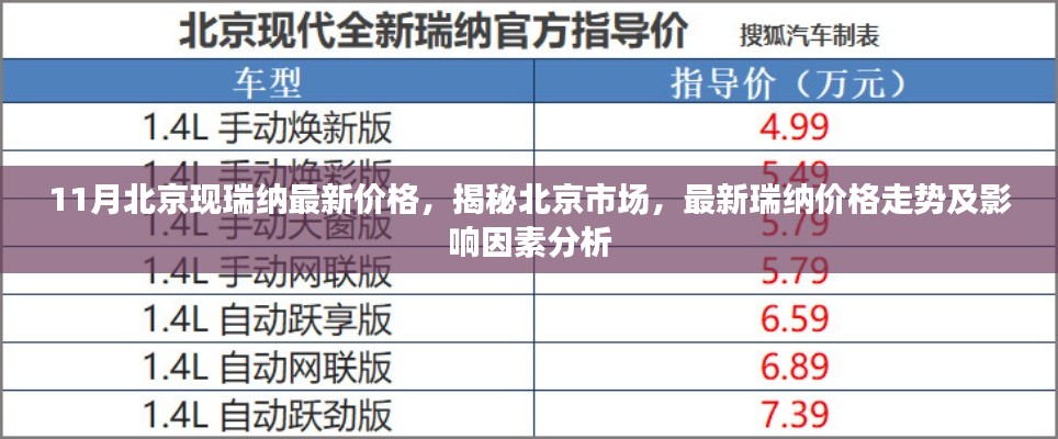随着汽车市场的繁荣与发展,消费者对汽车价格的高度关注成为常态,北京市场上备受瞩目的车型之一——现代瑞纳的价格走势引起了广大消费者的关注,本文将围绕“11月北京现瑞纳最新价格”这一主题,深入分析其价格走势、影响因素及市场动态,为广大消费者提供有价值的参考信息。