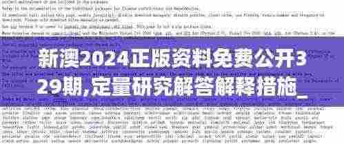为深入贯彻落实2024年度澳门特区关于知识产权、项目研究等领域的各项方针政策,特此发布新澳2024正版资料免费公开329期。本期重点围绕定量研究的解答及相关解释措施,以期为各界提供参考,促进学术研究及产业发展。